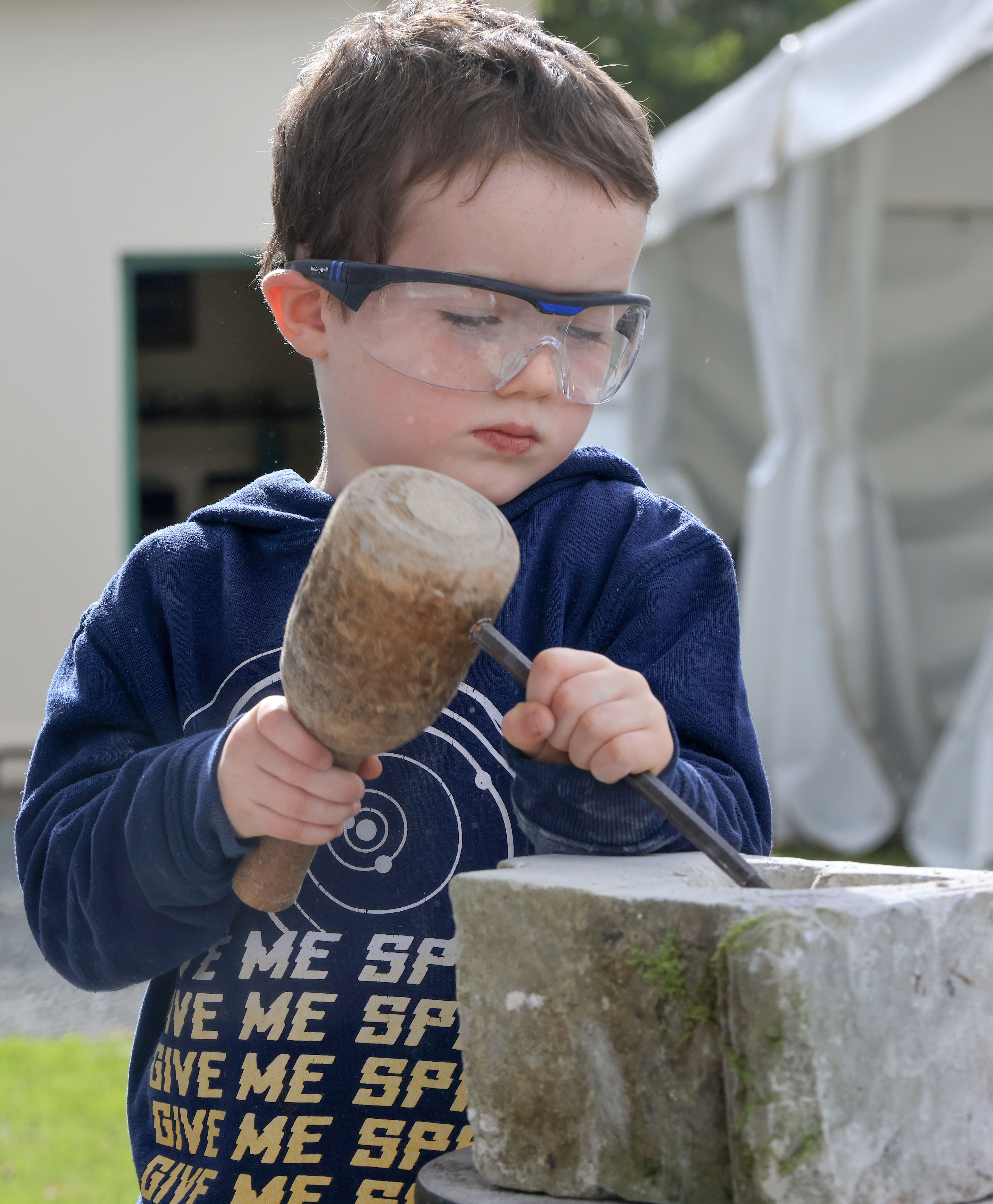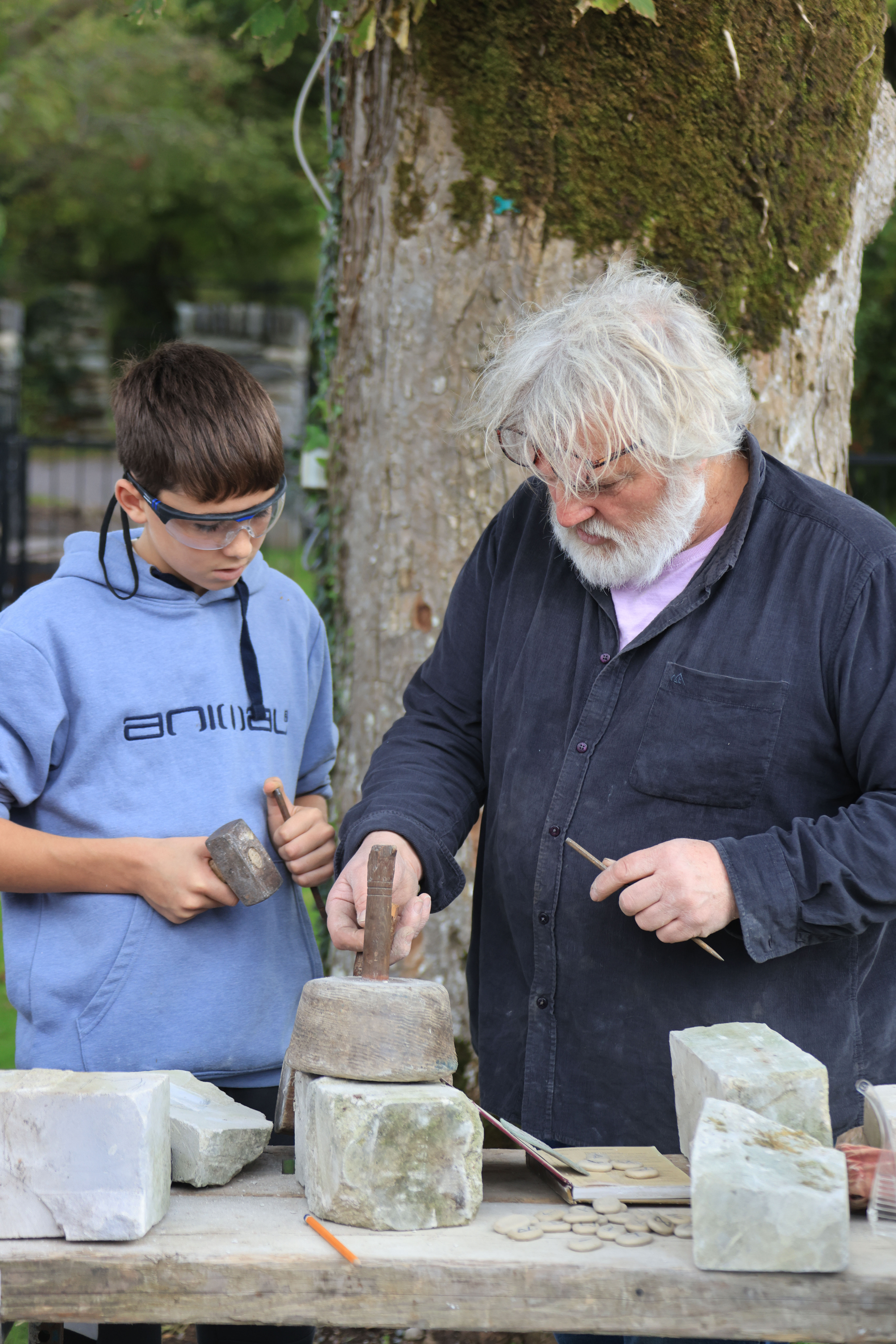 Image above: young Kingdom of Skills traditional craft workshop participant with stone carver Philip Quinn. Photo by Valerie O'Sullivan.