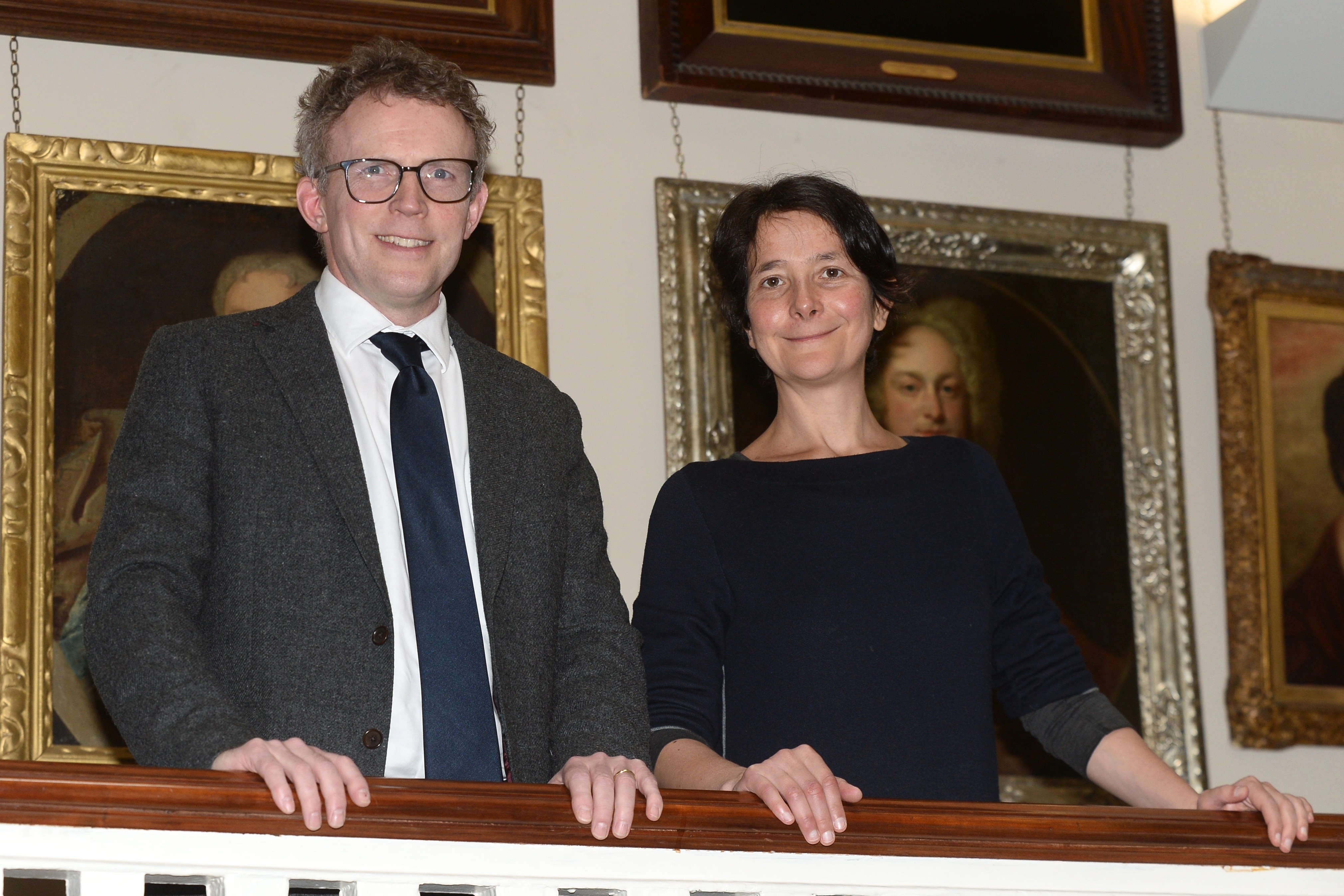 Left hand image: The Hon. Desmond Guinness (1931-2020) by Amelia Stein. Right hand image: John Maiben Gilmartin, reproduced courtesy of University of Maynooth.