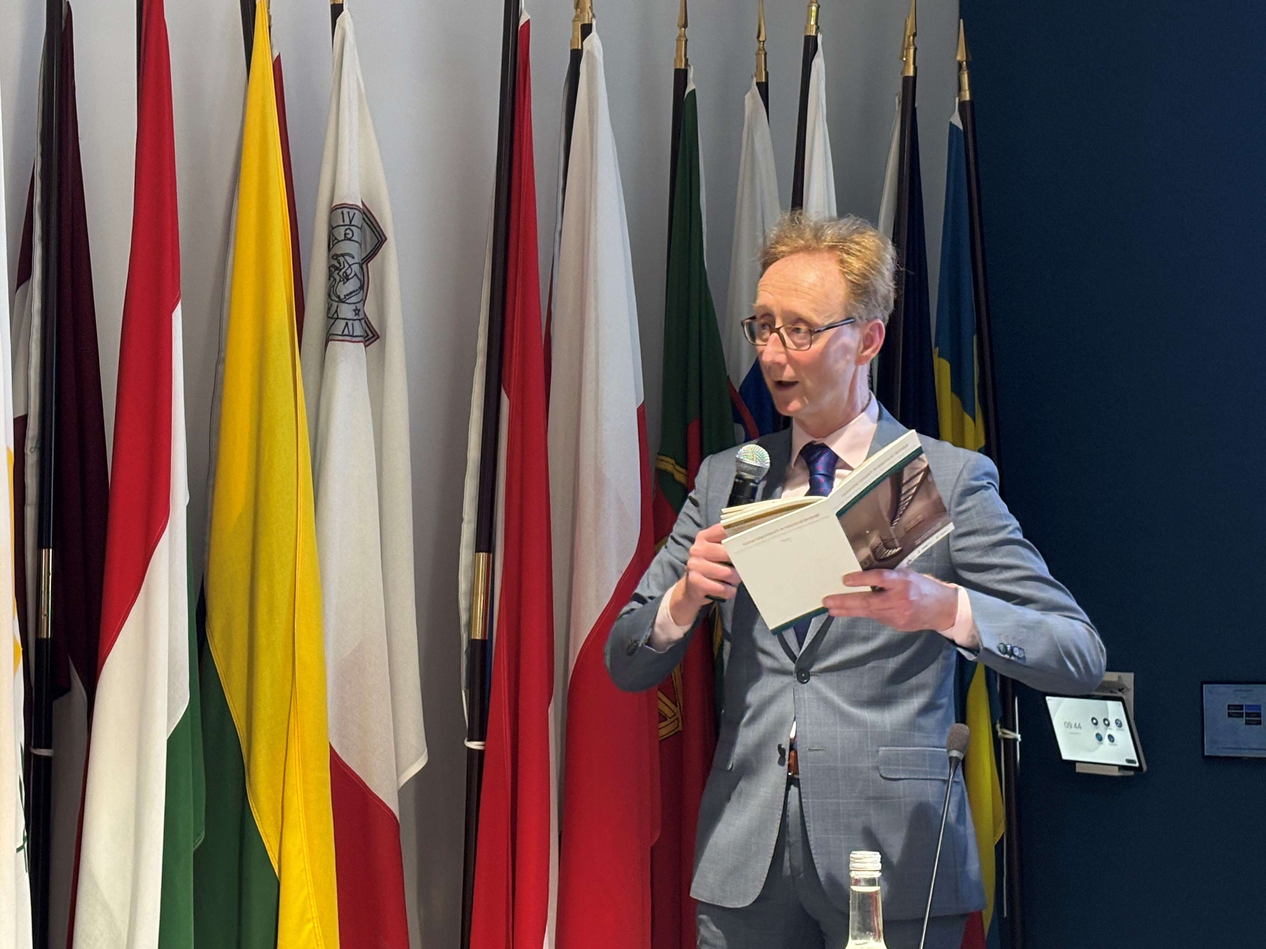 Fearghas O Beara Head of European Parliament Lisaison Office in Ireland launching adaptive resue conference at Europe House, Dublin, Ireland.